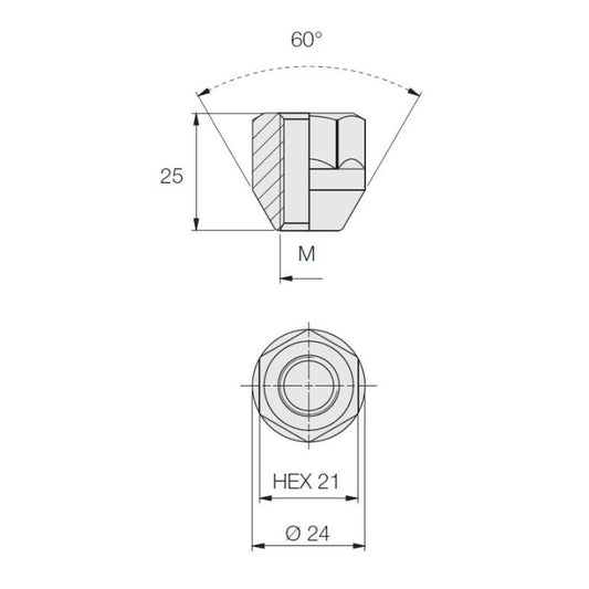 Open Nut, 60° Taper, 19 Hex, 25 Height