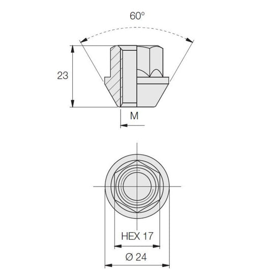 Open Nut, 60° Taper, 17 Hex, 23 Height